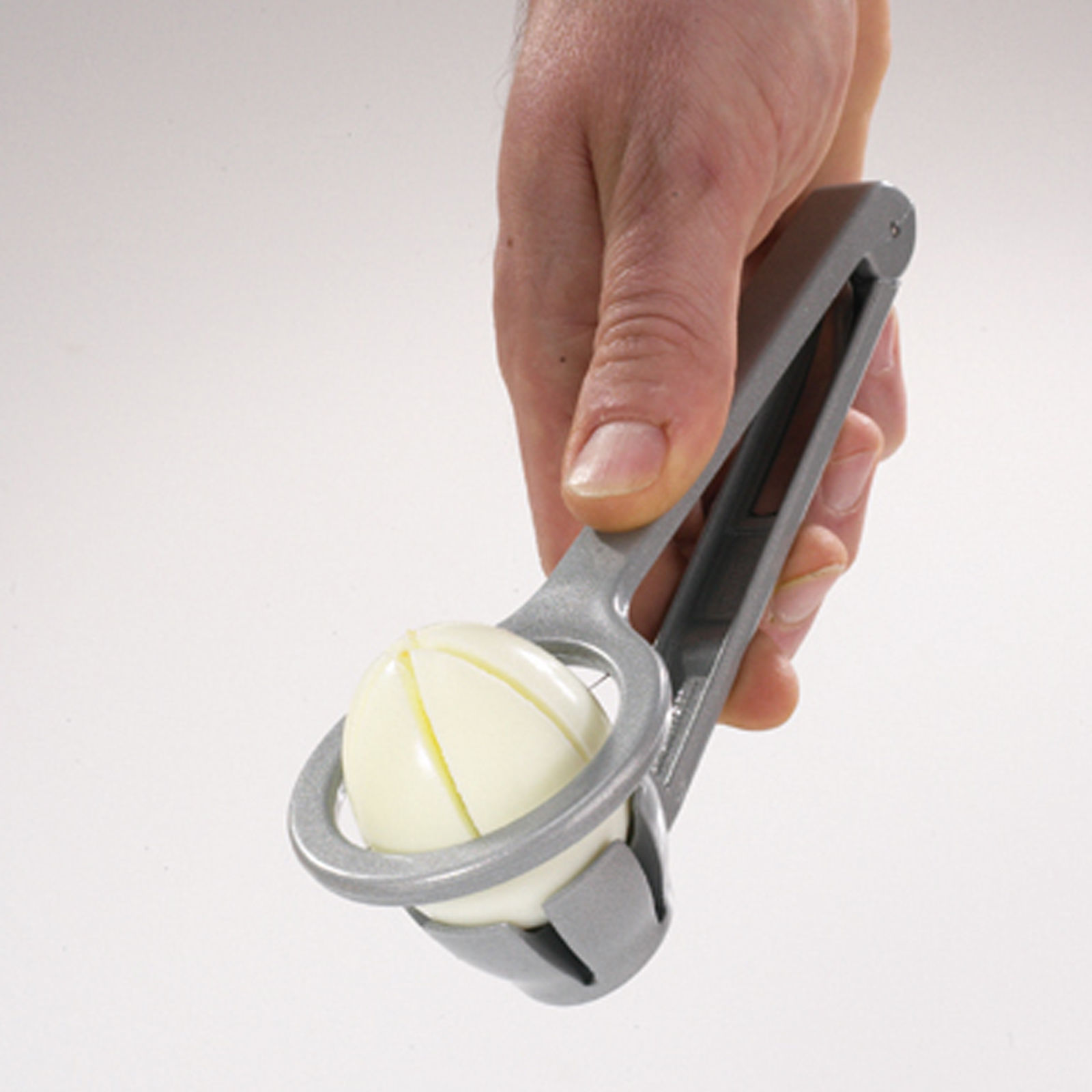 • teilt hartgekochte Eier mit einem Druck in 6 gleich Teile